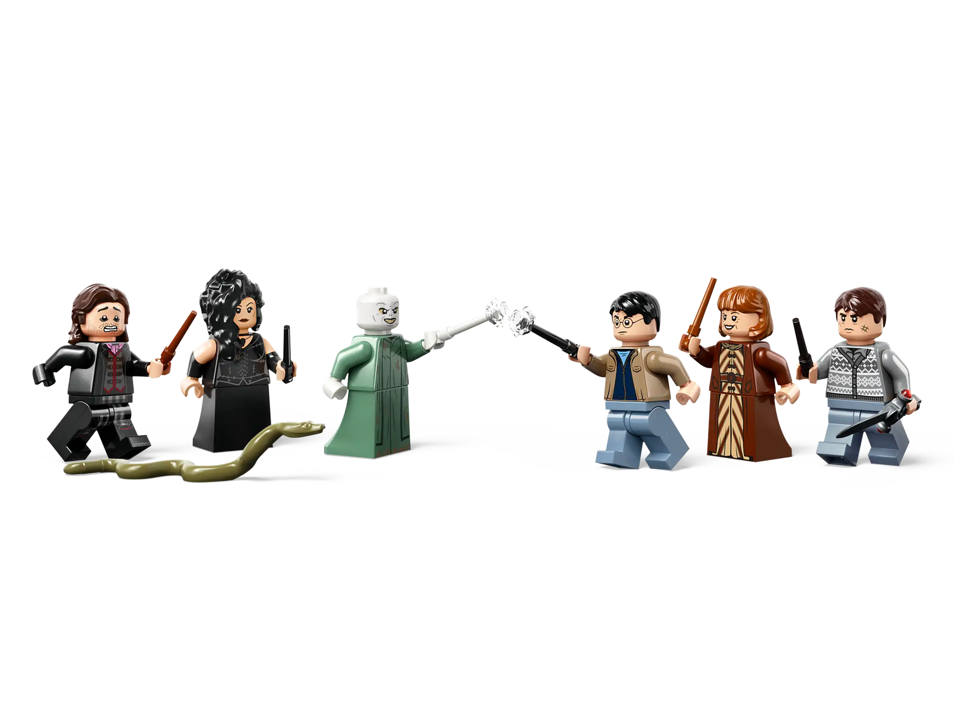 • 6 ikonische Minifiguren: Spiele mit Harry Potter™ und Voldemort™, jeweils mit Zauberstäben und Zaubereffekten, sowie Neville Longbottom™ mit dem Schwert von Gryffindor™, Molly Weasley™, Bellatrix Lestrange und Scabior.