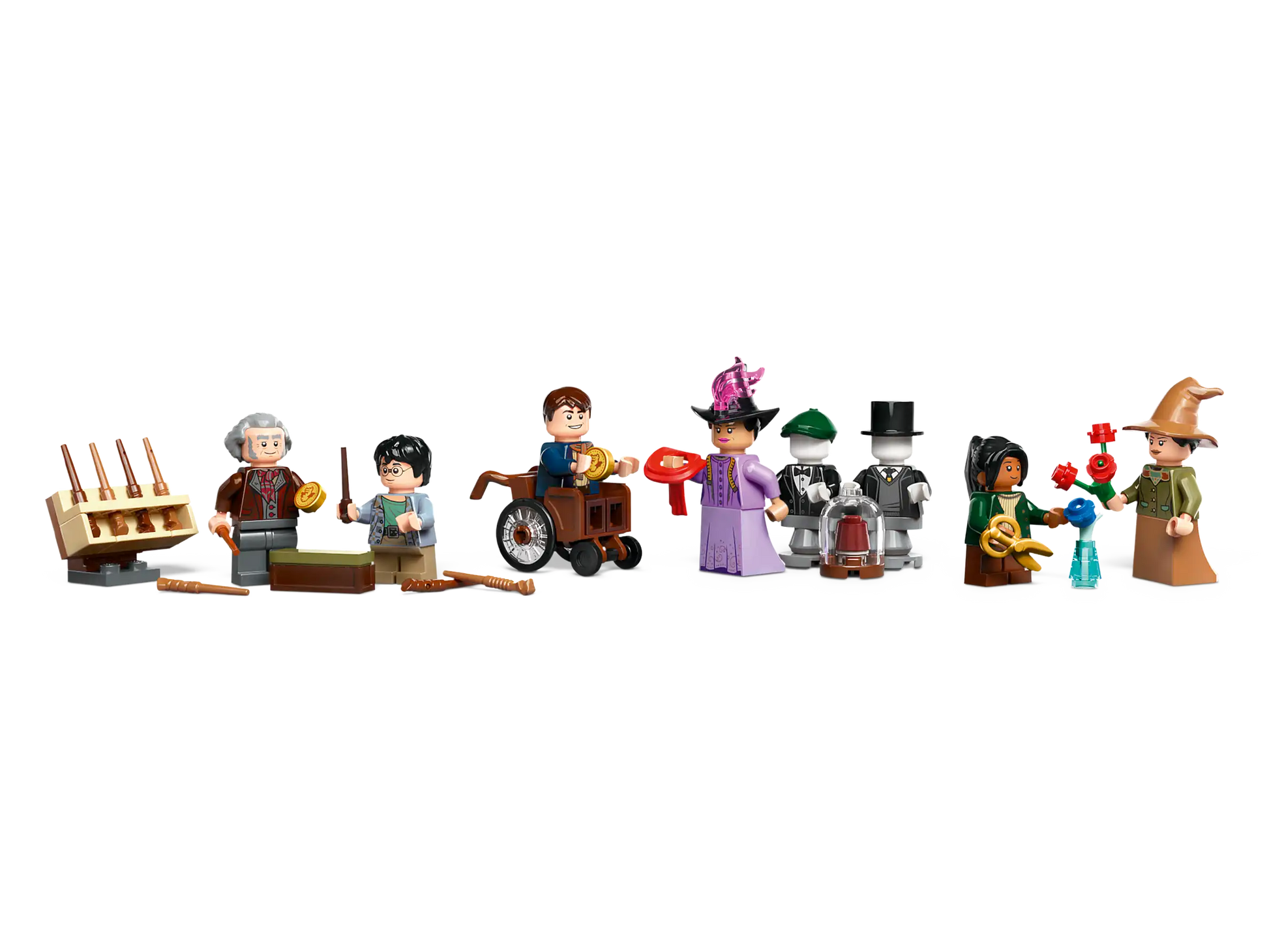 - Das Set enthält 6 LEGO Minifiguren: Harry Potter, Garrick Ollivander™, Madam Malkin, Padma Patil, einen Zauberschüler und eine Hexe mit einer Karre voller Blumen. Gemeinsam bringen sie die Atmosphäre der belebten Winkelgasse direkt ins Kinderzimmer.