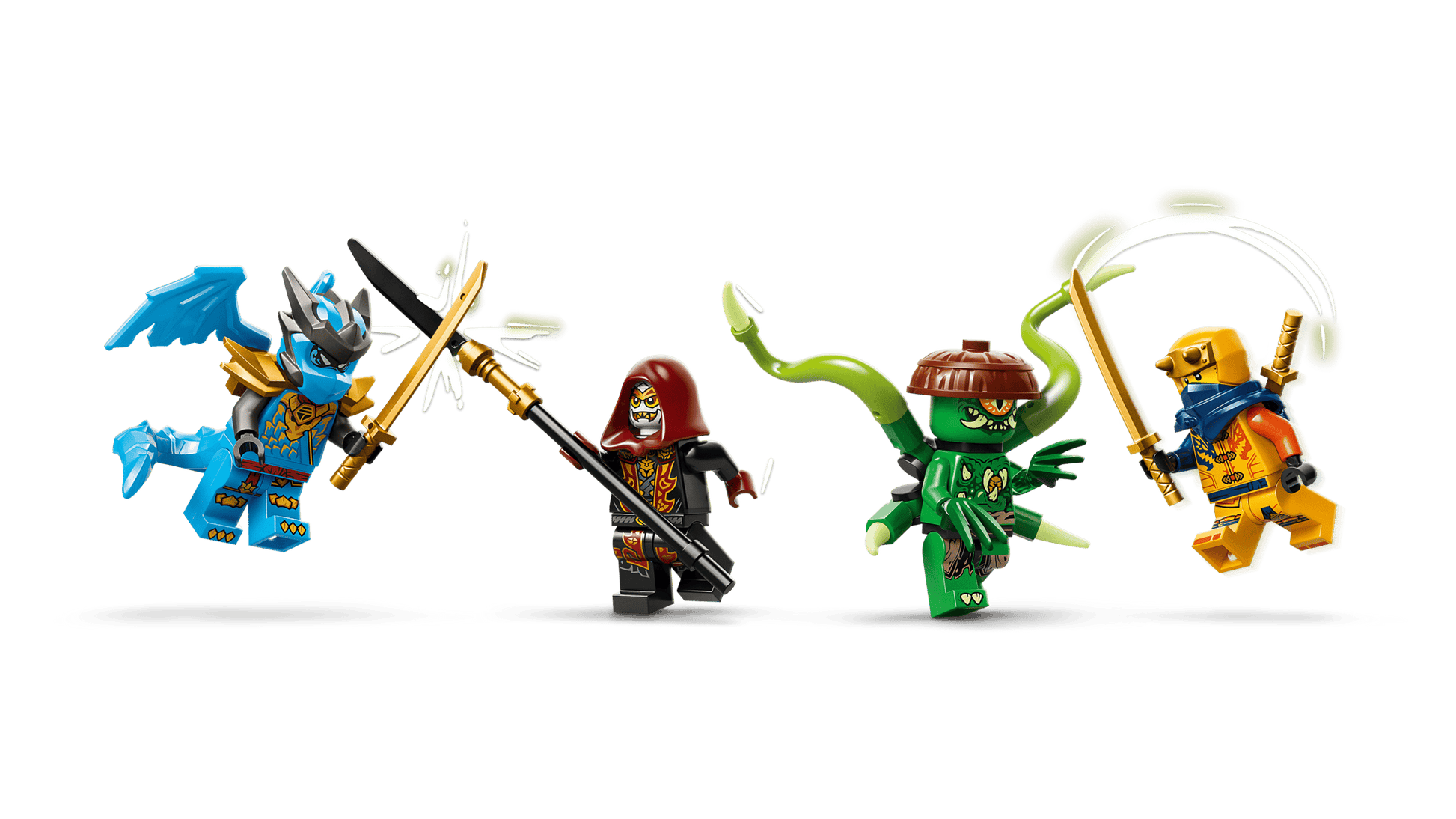 - 4 NINJAGO® MINIFIGUREN: Die Ninja Arin und Drachen-Form-Nya müssen es mit dem bösen Mutationsmonster und dem Loyalisten aufnehmen. Die Helden und die Bösewichte sind bestens für spannende Duelle ausgerüstet