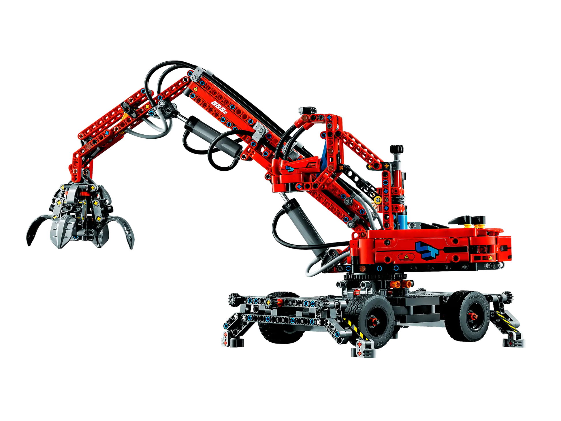 - Luftdruckbetätigte Funktionen: Ein beweglicher Ausleger mit einer Reichweite von ungefähr 35 cm sowie eine klassische Greifklaue, die sich öffnet und schließt